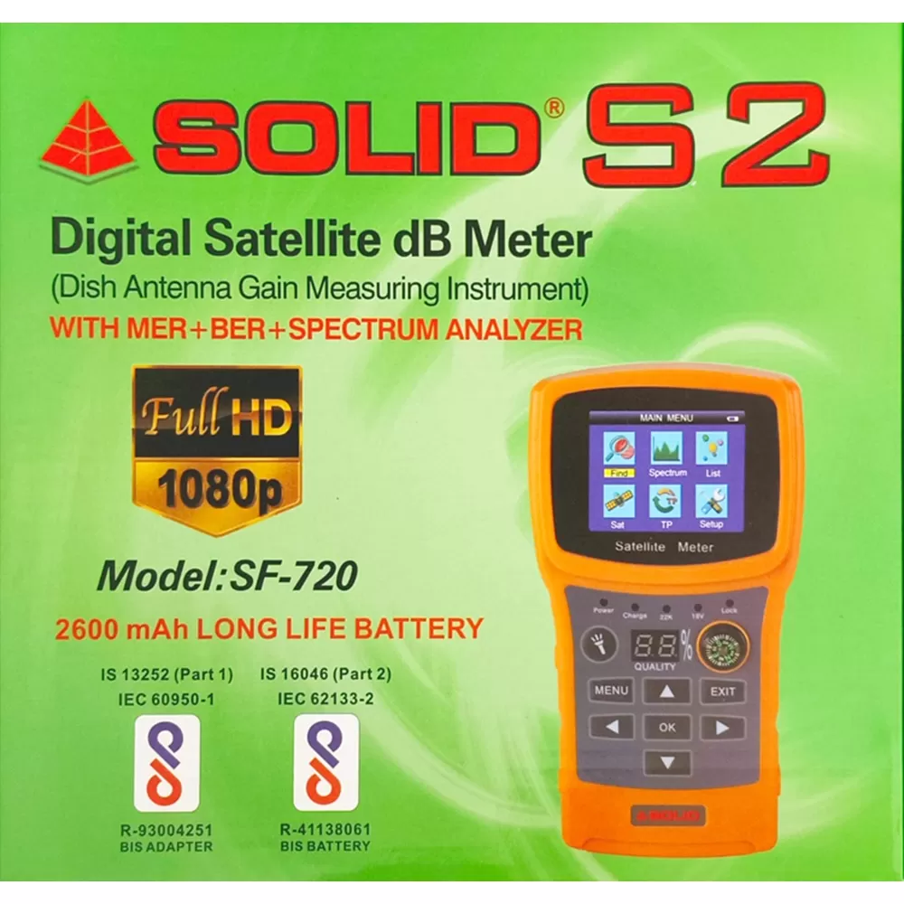 SOLID SF-828 HEVC Full HD Digital Satellite dB MeterNow you can check audio and video for FTA satell..