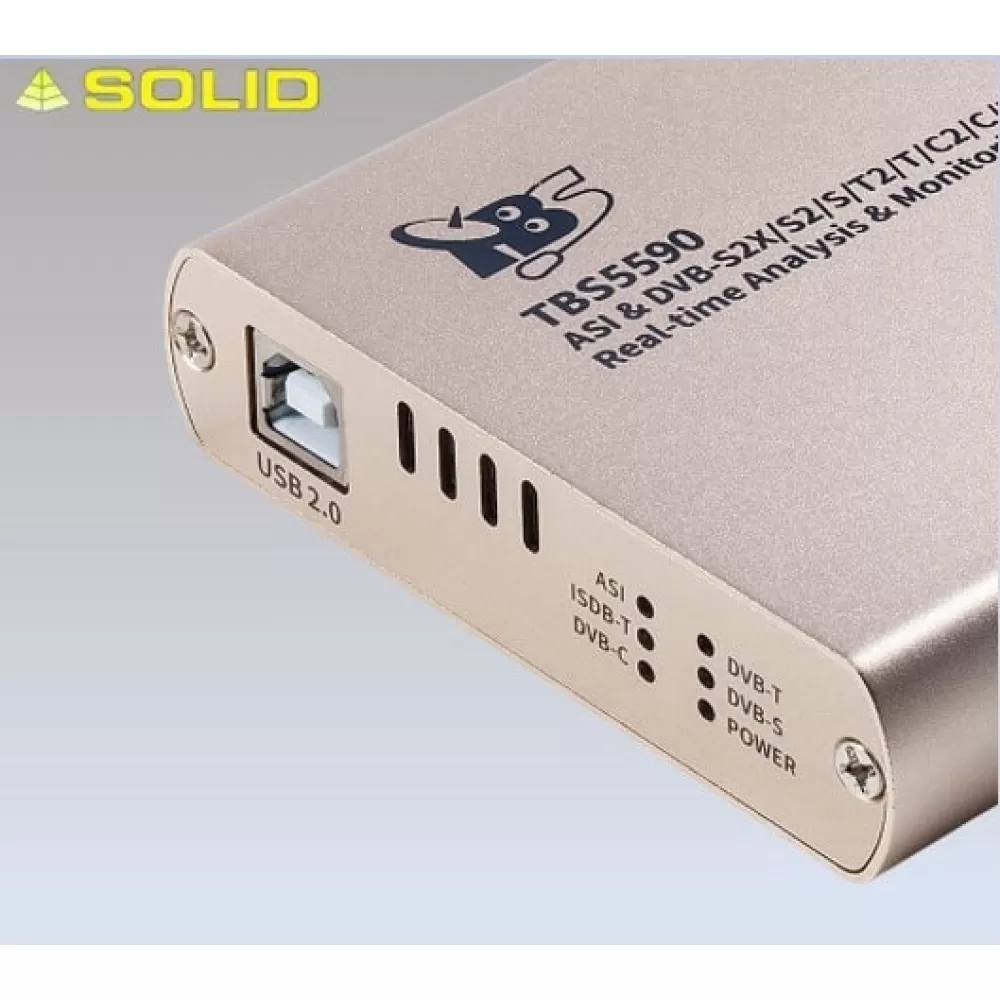 is a DVB multi-standard external TV tuner box with USB2.0 interface. It is capable of receiving digital TV channels of multiple standards: DVB-S2X/S2/S/T2/T/C2/C/ASI/ISDB-T. Through the USB interface, you can easily plug the TBS5590 Universal TV Tuner box to your desktop or laptop PC for watching or recording different standards digital TV channels.
